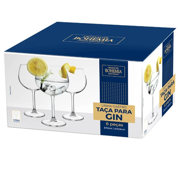 Jogo de 6 taças para gin tônica em cristal ecológico 570ml A19,5cm